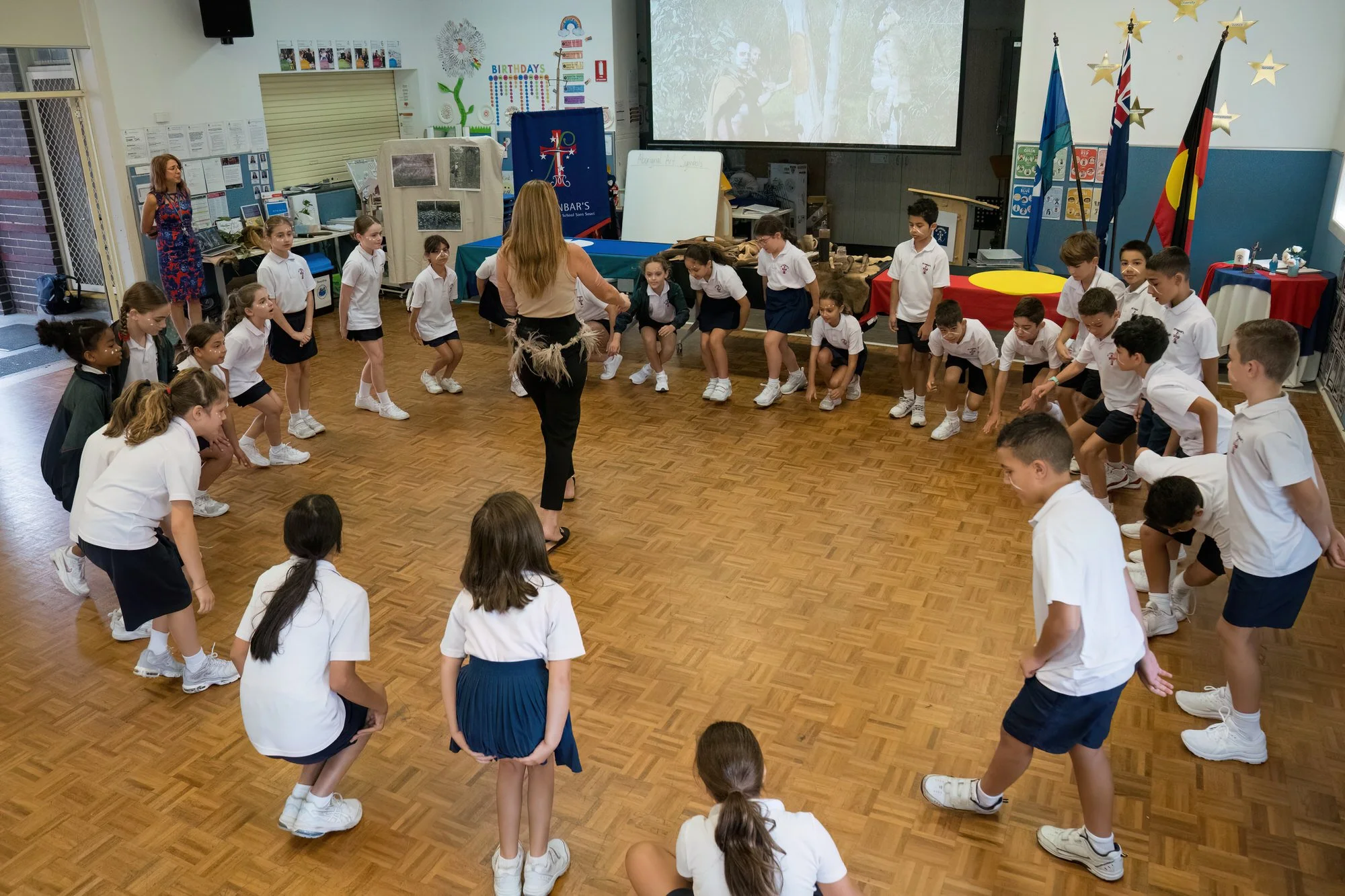 In addition to the whole school assembly, comprising an Acknowledgement of Country, Paint up, and Cleansing Ceremony, students and teachers will actively participate in a Paint up during the sessions.